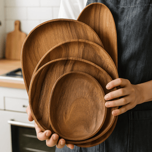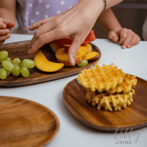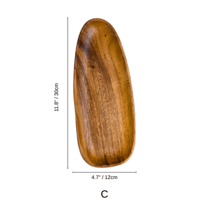 The acacia wood boasts a natural woodgrain finish so each one is unique. Acacia wood is a durable hardwood that is lightweight, scratch, and water-resistant. Its natural antibacterial property makes it the perfect material for serving food. Its smooth finish makes it easy to clean too. Simply warm hand wash after each use.